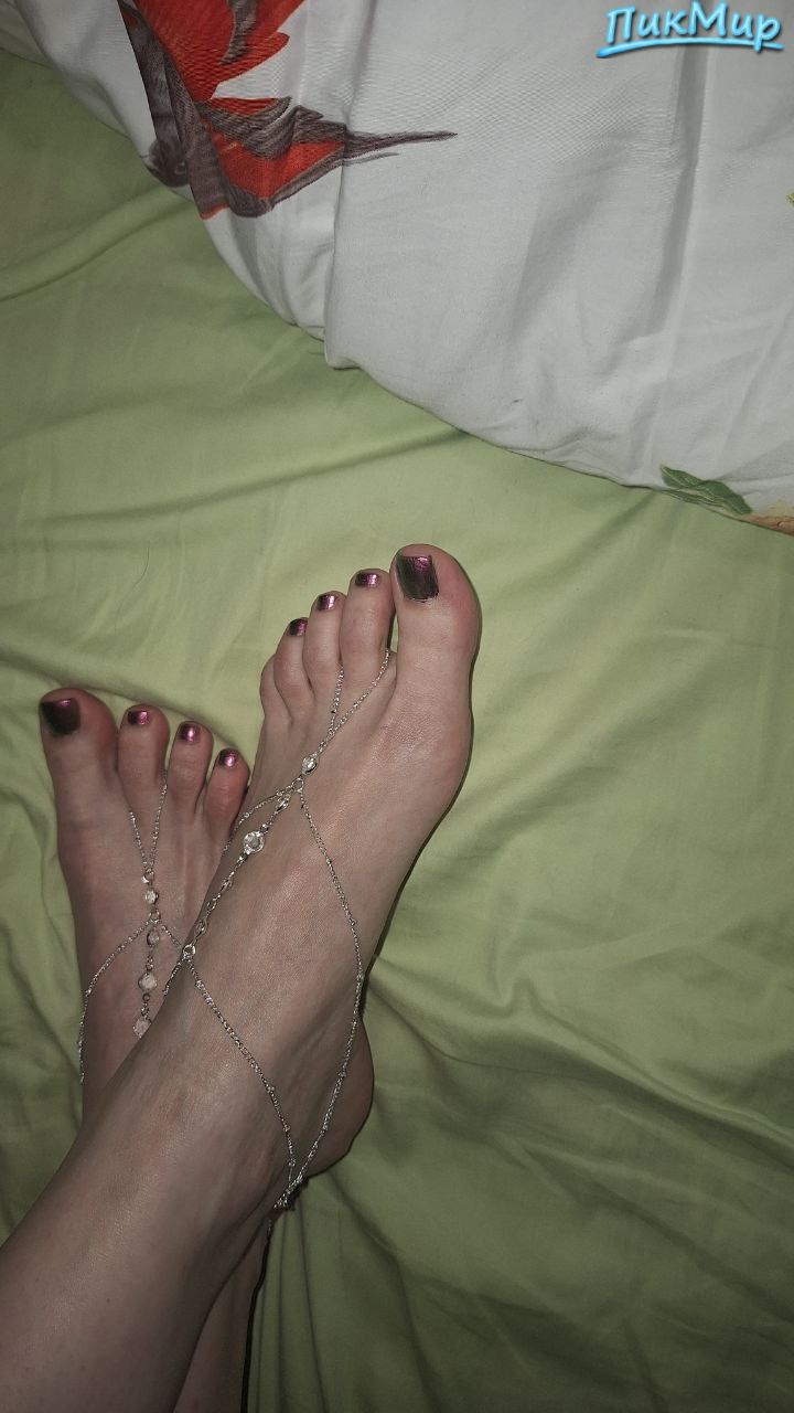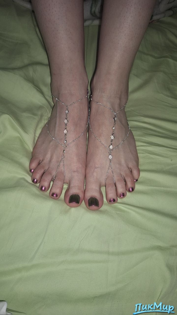 Красивые ножки с украшениями хорошо на фоне члена смотрятся