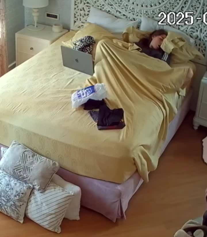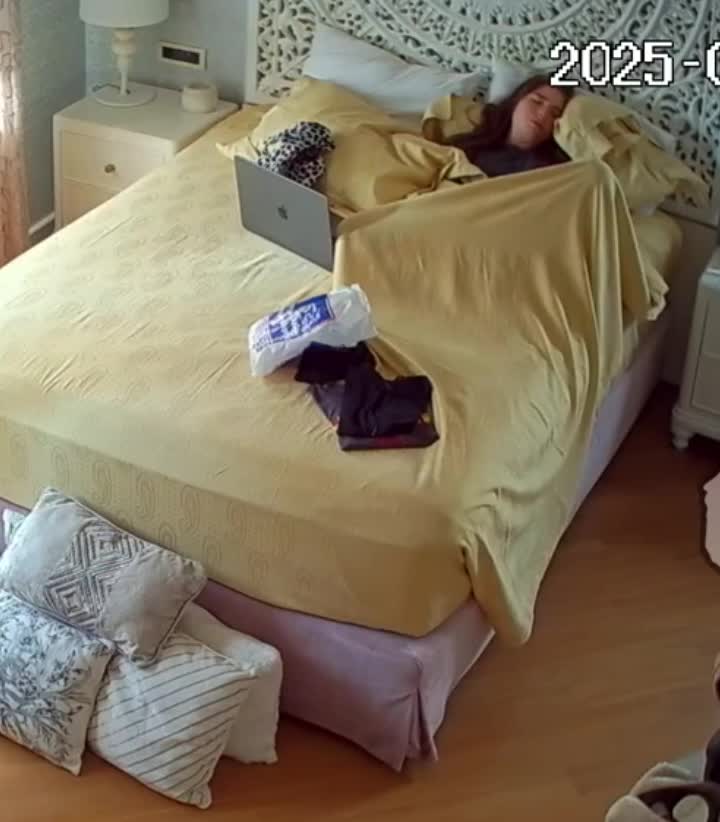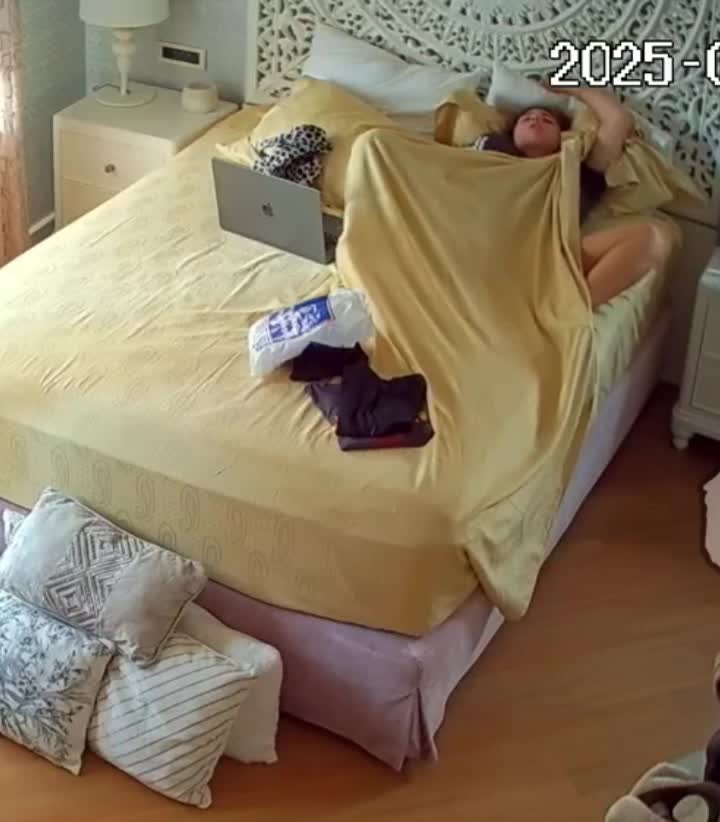 Доводит себя до оргазма вибратором не подозревая,что в комнате установлена скрытая IP камера.