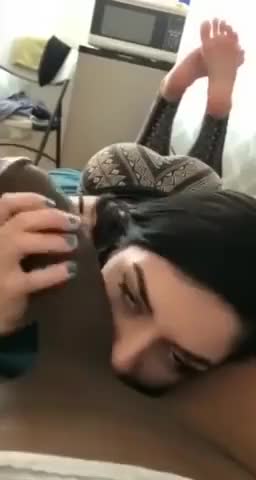 Красавица взялась победить огромный чёрный член, а он ей даже в рот не лезет, но она очень старалась и таки добыла сперму))