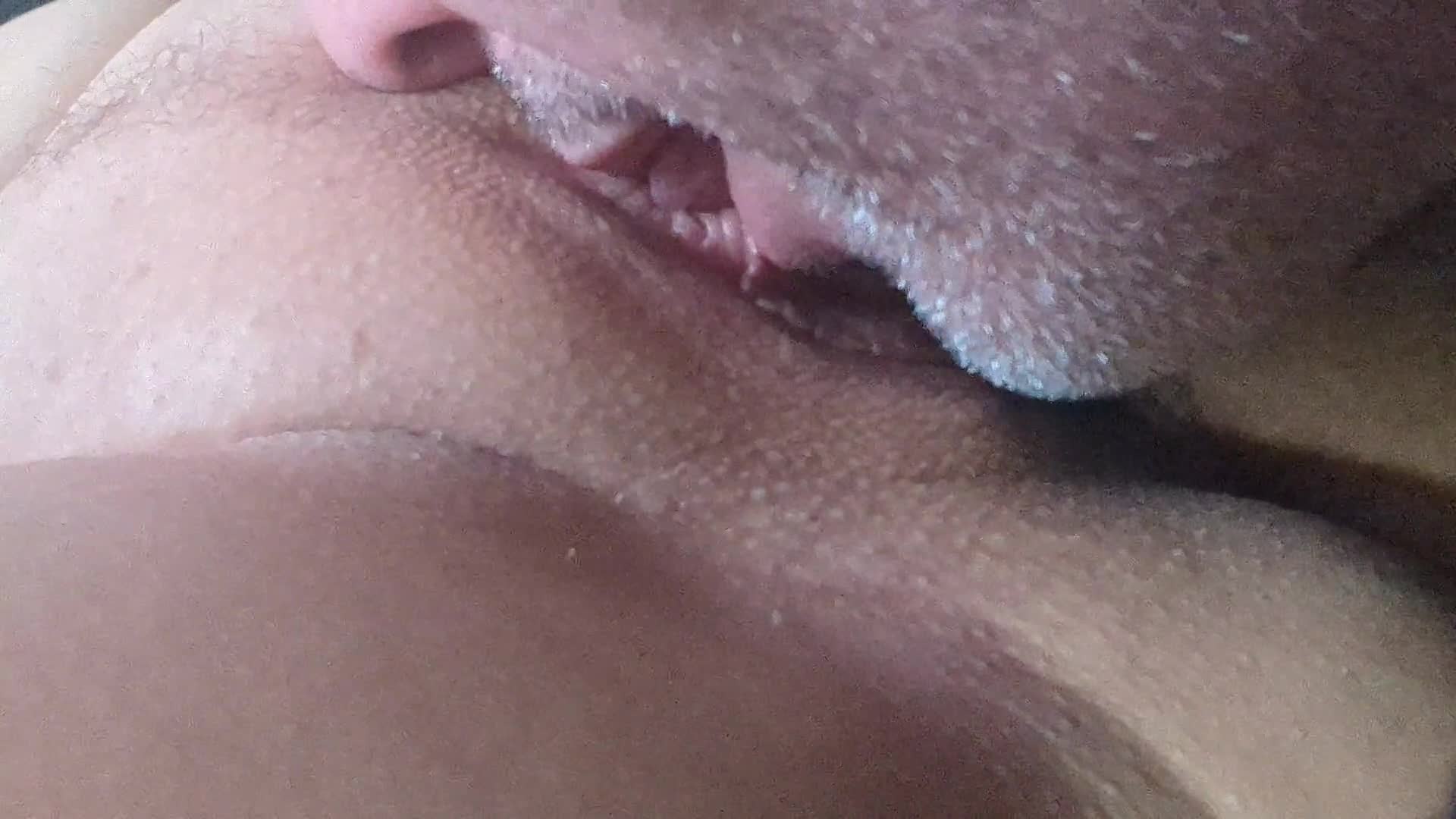 Мужик жадно вылизывает бритую киску пышной зрелки крупным планом!