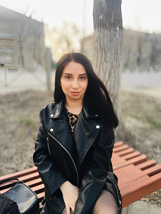ухоженная взрослая и стройная девица, с заметной грудью. косуха ей идет