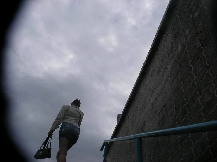 Преследователь достиг своей цели увидев её трусики под юбкой!