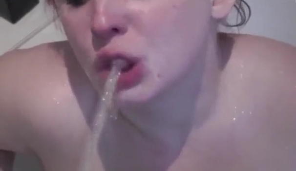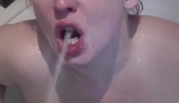 Молодая пышечка с удовольствием принимает золотой дождь в ротик...